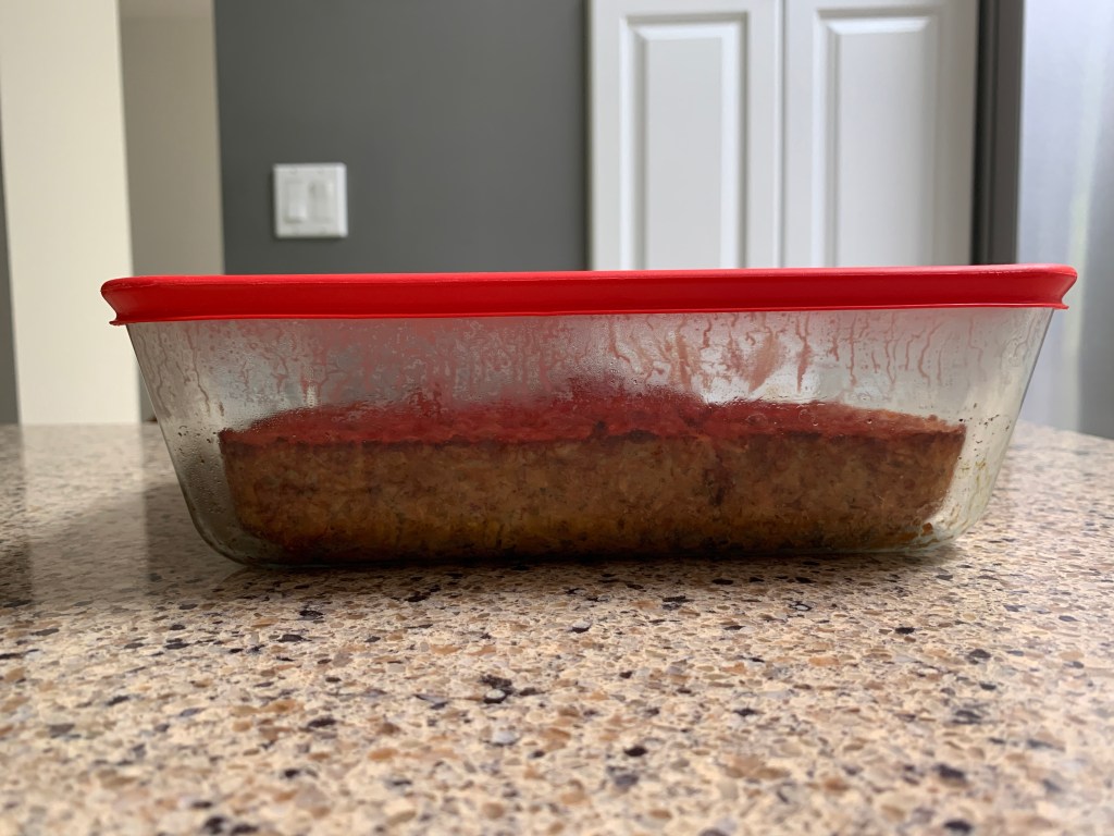 Spray a baking dish (I use an 11 cup/2.6 L capacity pirex – see picture at the end) and add your mixture. You can use a 8×8 inch cake baking dish.